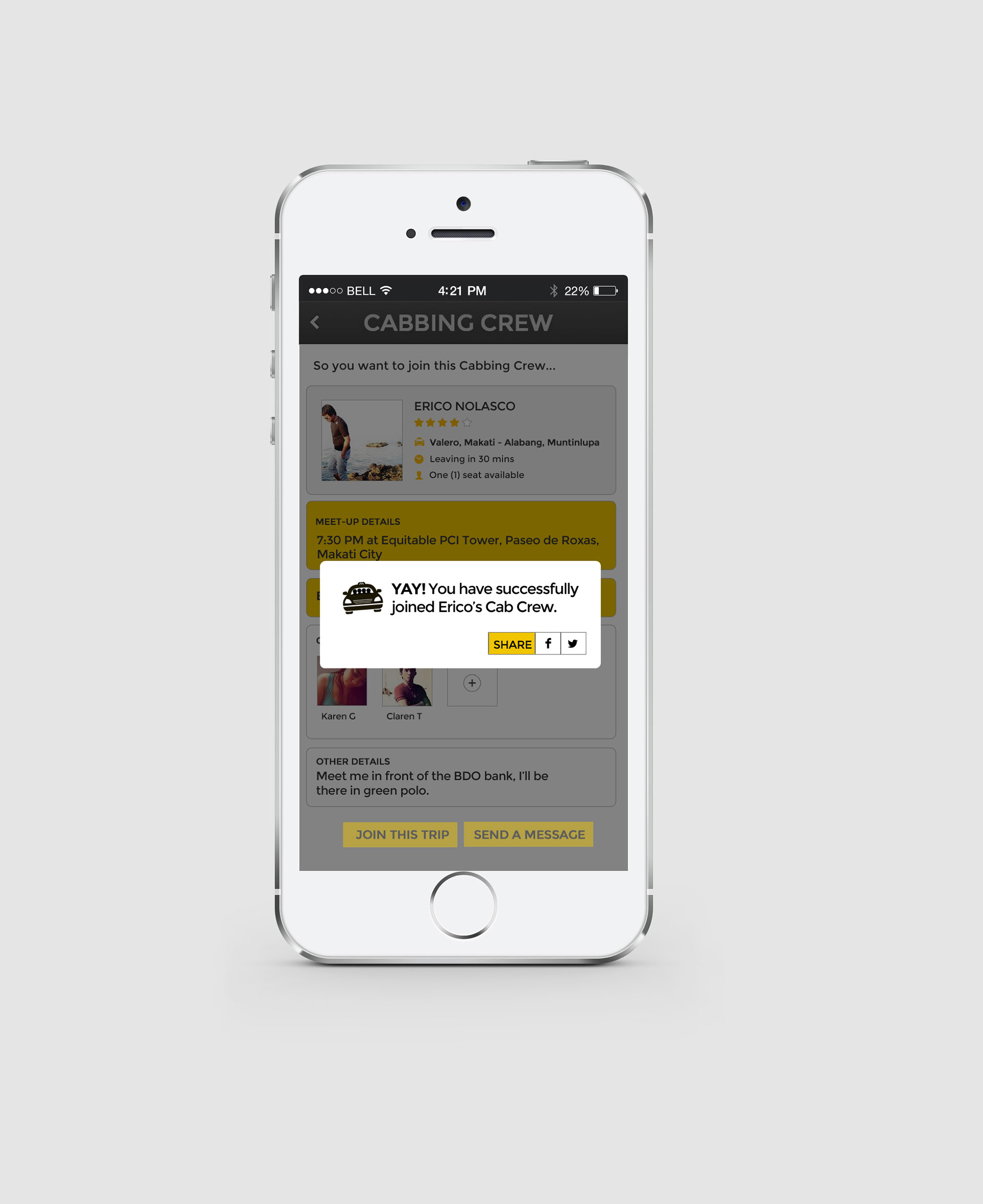 We created a mobile app concept that enabled commuters to share cabs with nearby passengers heading in the same direction, offering real-time matching, cost-splitting, and built-in safety features. The idea is pre-uber and car sharing apps and addressed long queues, rising fares, and urban inefficiency in the Philippines, earning the top prize for its smart, scalable solution to everyday city travel.