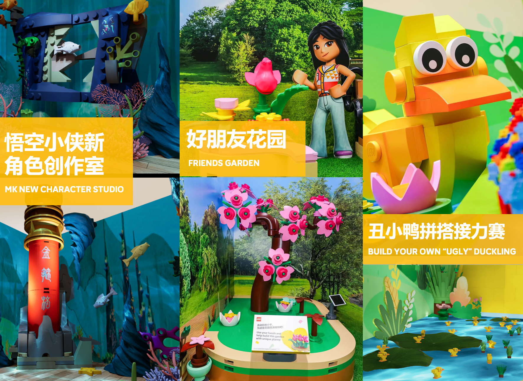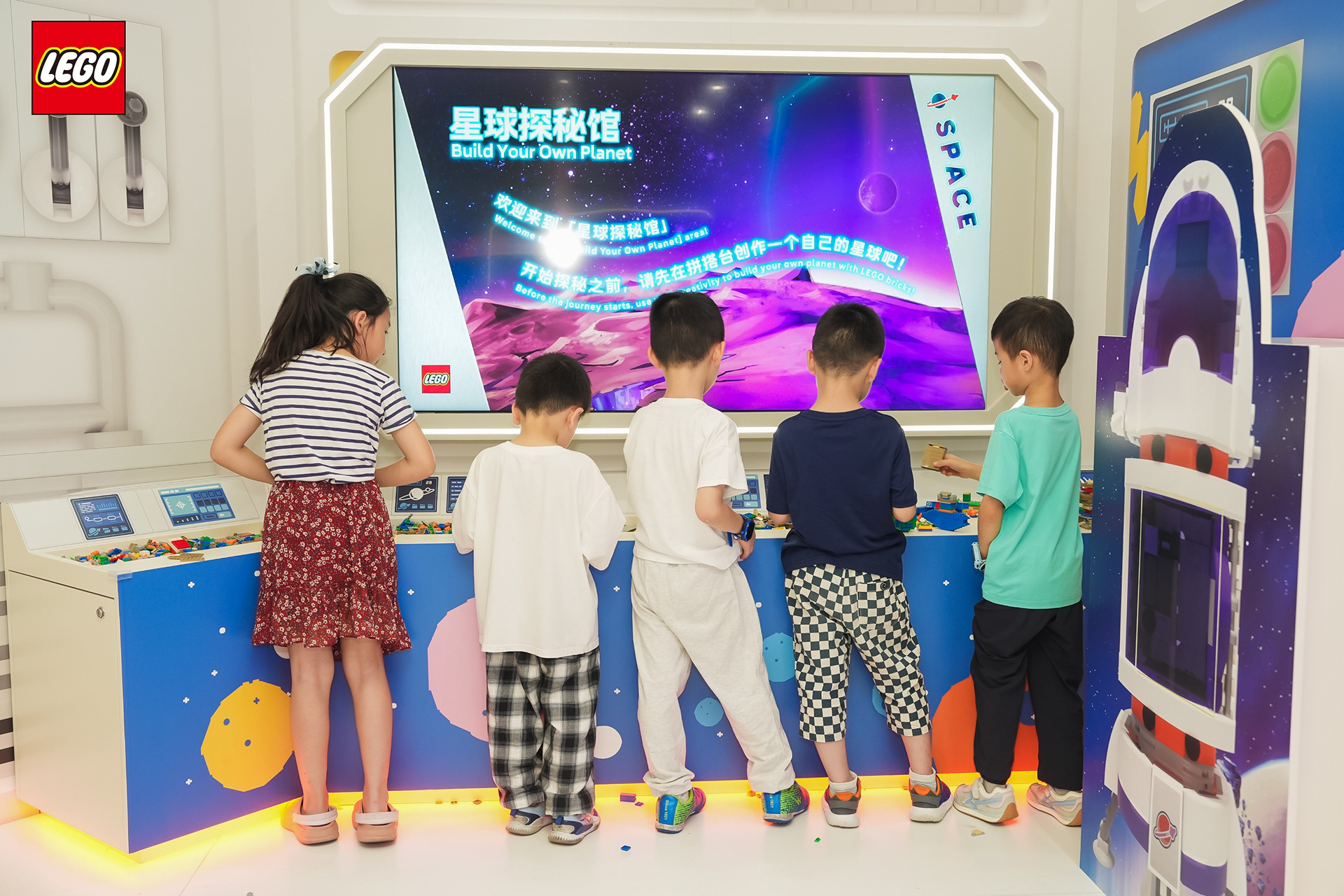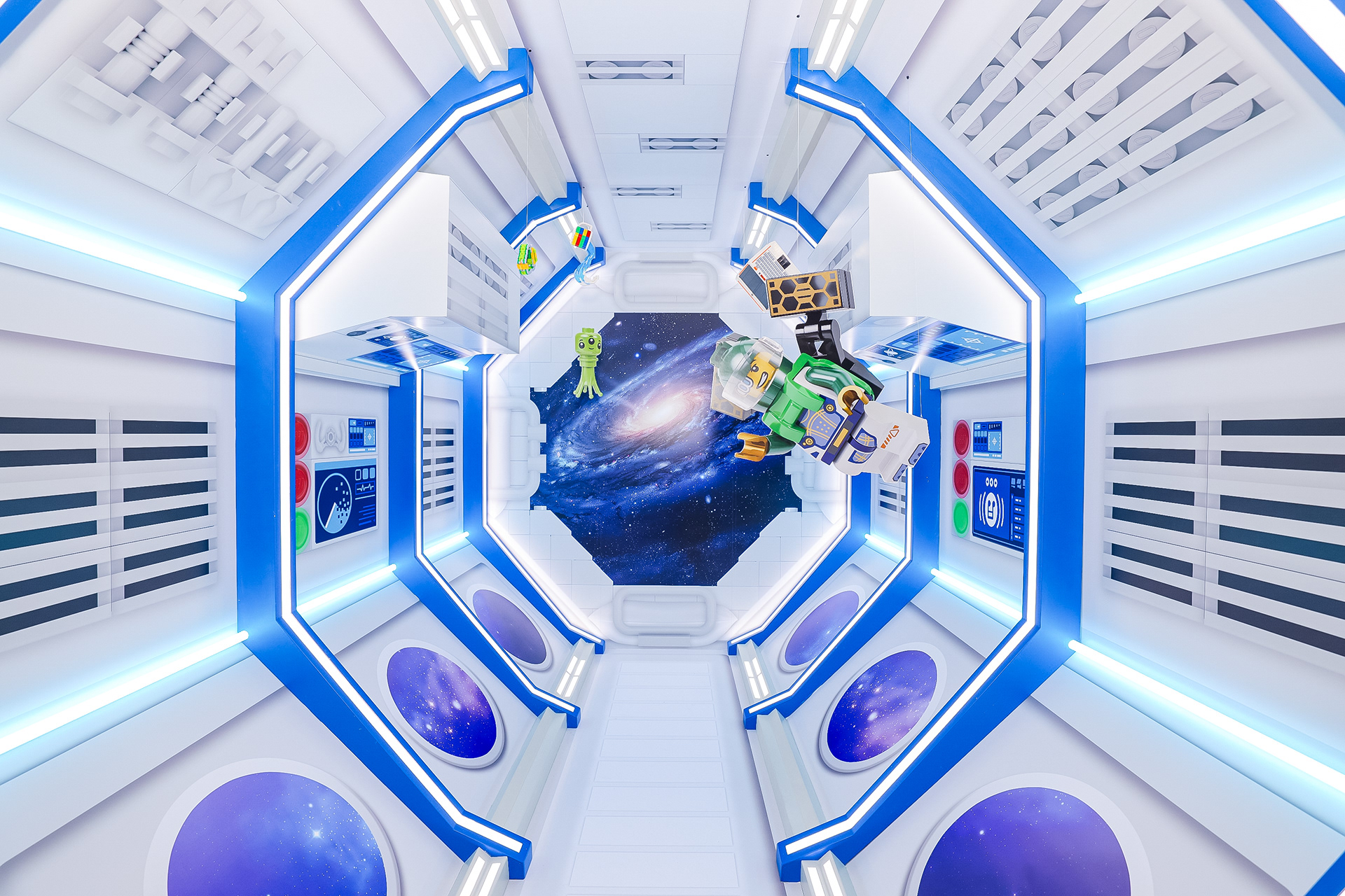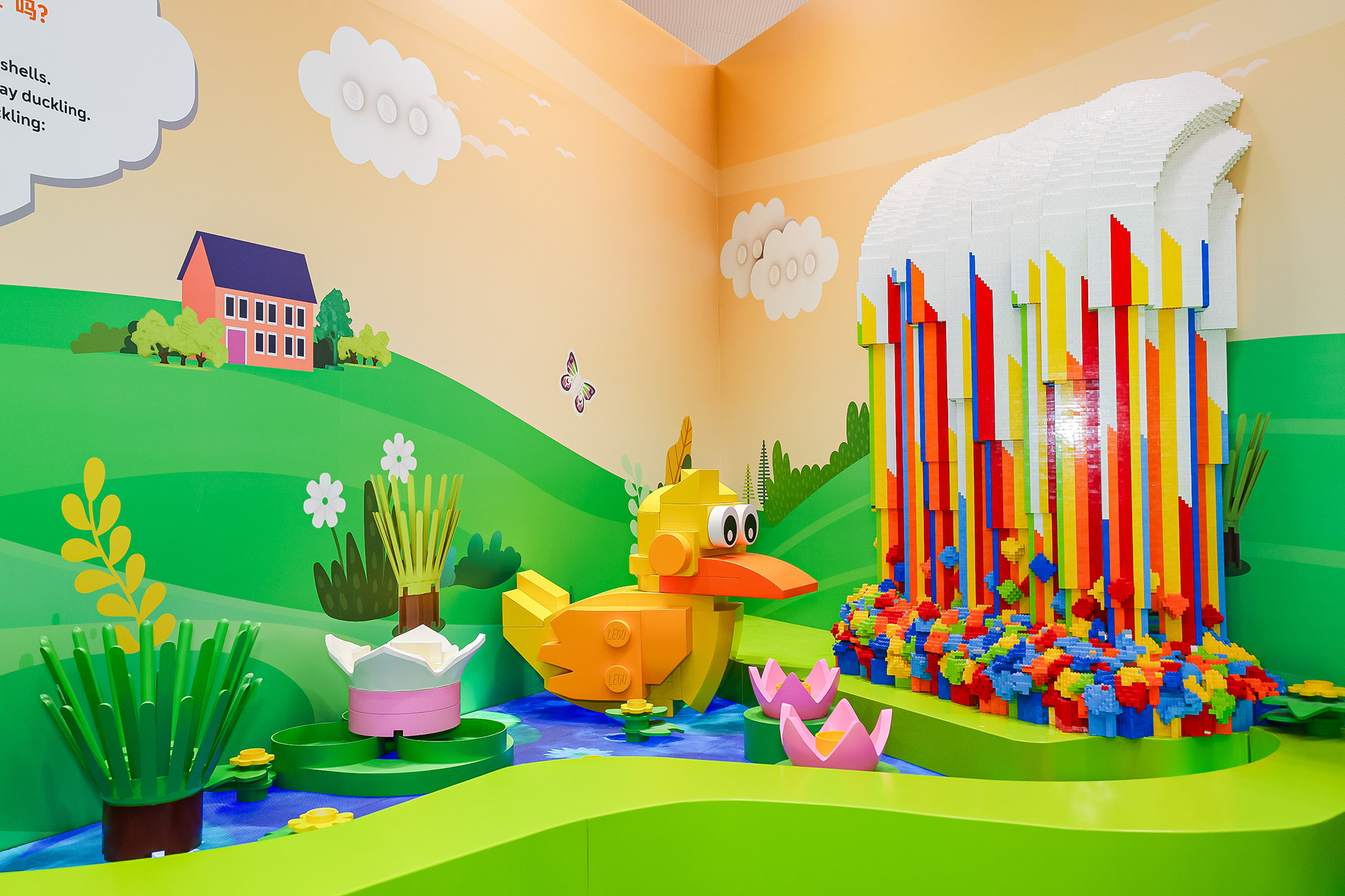 We designed three immersive play zones—Space, Vehicles, and Classic Stories—each featuring brick-powered interactive experiences. Highlights included a zero-gravity photo booth, an alien portrait gallery, a character-building studio, a duckling pond, a car-tunnel lab, and more hands-on moments that encouraged kids to create, explore, and play.